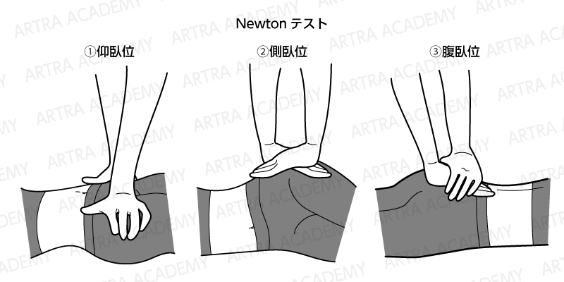 腹臥位における検査の際、仙骨中央でなく仙腸関節部に圧迫を加える方法もあります(Newtonテスト変法)。