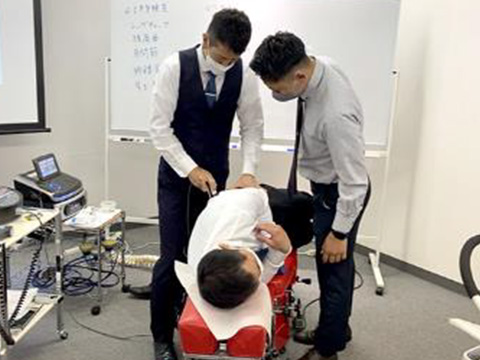理論を聞く講義、実際の技術を見るデモンストレーションで知識をインプットし、施術効果を体感し、施術を行う実技で知識をアウトプットすることで真の習得を目指します。